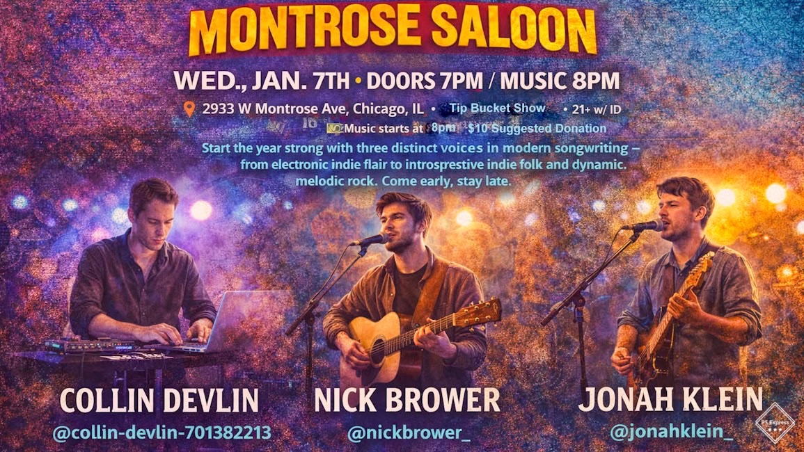 Montrose Saloon 2933 W Montrose Ave, Chicago, IL, United StatesWEDNESDAY, JANUARY 7, 2026 MONTROSE SALOON 📍 2933 W Montrose Ave, Chicago, IL 💵 Tip Bucket Show! $10 Suggested Donation 🔞 21+ w/ I.D. 🕗 Music starts at 8PM Start…