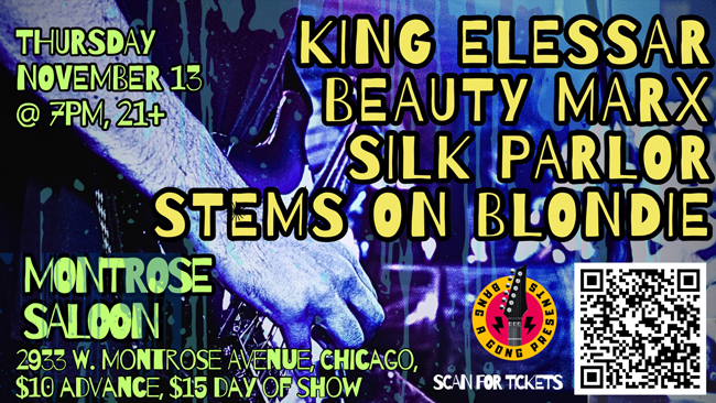 $10 advance, $15 day of show; 21+ w/ID Bands Performing: 7pm King Elessar (instagram.com/kingelessarband) 8pm Beauty Marx (instagram.com/beautymarxband) 9pm Silk Parlor (instagram.com/silkparlorband) 10pm stems on blondie (instagram.com/stems_on_blondie) ADVANCE TICKETS: https://www.eventim.us/event/King-ElessarBeauty-MarxSilk-Parlorstems-on-blondie/664815